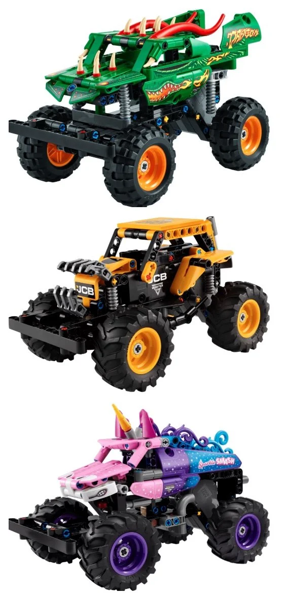 Lego released two new Technic Monster Jam sets, 42220 Sparkle Smash and 42219 Grave Digger Fire and Ice at a price of $34.99. When the Monster Jam subtheme debuted in 2021, the price was $19.99. The two new releases in 2025 saw an increase to $27.99 and one year later the price jumped again to $34.99. The fundamentals of the sets have remained unchanged with a similar piece count, size, scale, a pull-back play feature, fun designs, and no minifigures.