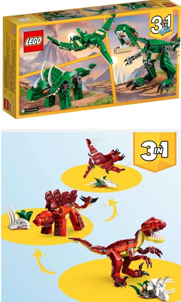 31379 Fierce Dinosaur release this year is an upgraded and recolored version of 31058 Mighty Dinosaurs that retired in 2025