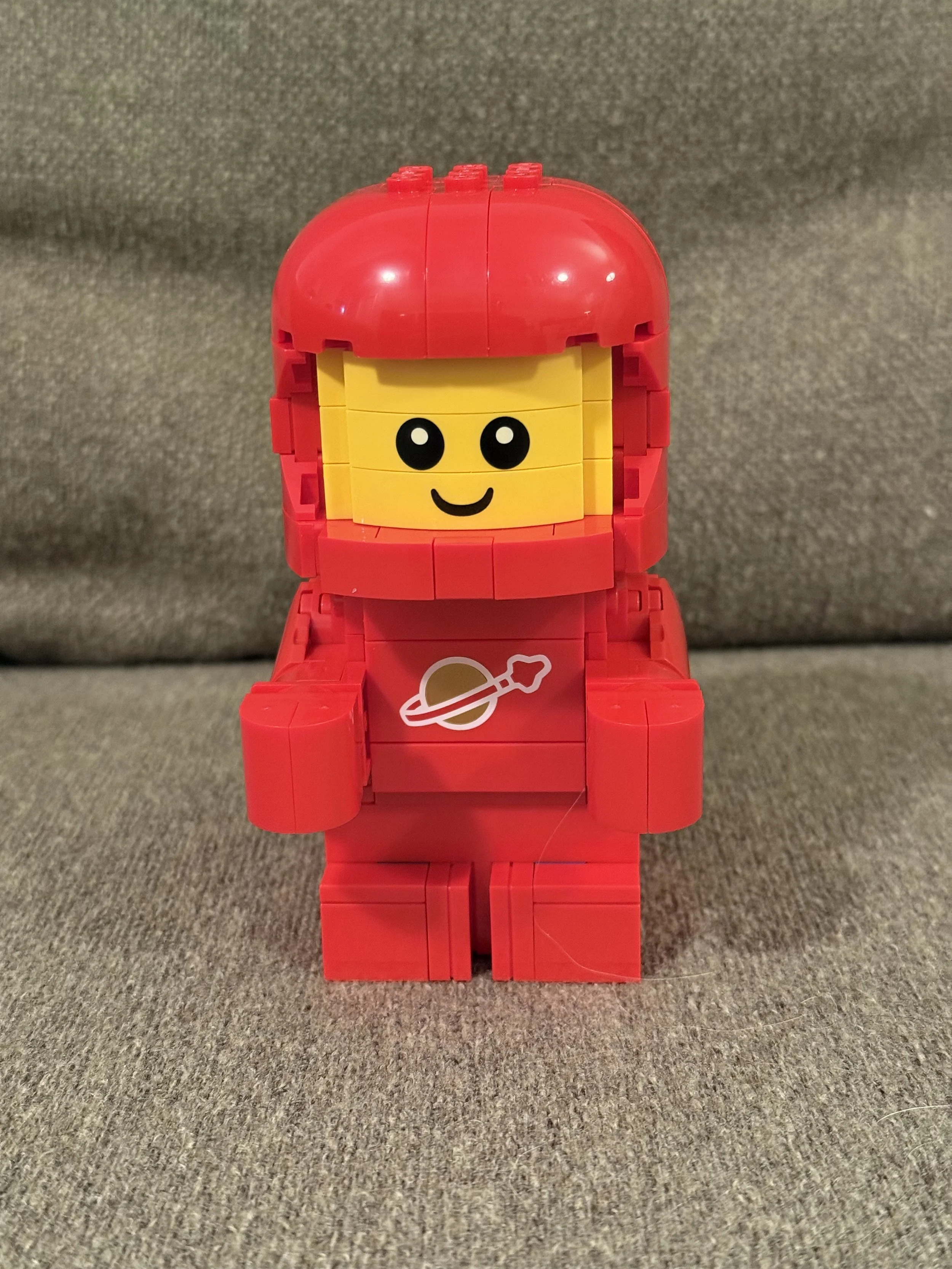My inspiration came that night as I was building a Lego set while rewatching the 2021 Rose Bowl between Ohio State and Utah, where CJ Stroud, Marvin Harrison Jr, and Jaxson Smith-Njigba had career games in an exciting shootout that saw OSU win 48-45. While I was watching that game I was building 40767 Up-Scaled Baby Astronsaut. 40767 was a recent GWP of an up-scaled minifigure in an all red space suit. It reminded me of the Ohio State alternate uniforms they wore in a game earlier that season versus Penn State.
